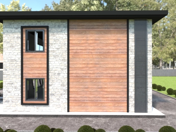 PROTAS hafif çelik evlerde, müşterimiz dilerse ahşap görünümlü çimento esaslı levhalarla dış cephede kaplama yapılmaktadır. Bu sayede yapı hem ahşap ev görünümüne kavuşmakta hem de yangın, böceklenme, yapısal bozulma gibi tehlikeler ortadan kalkmaktadır.