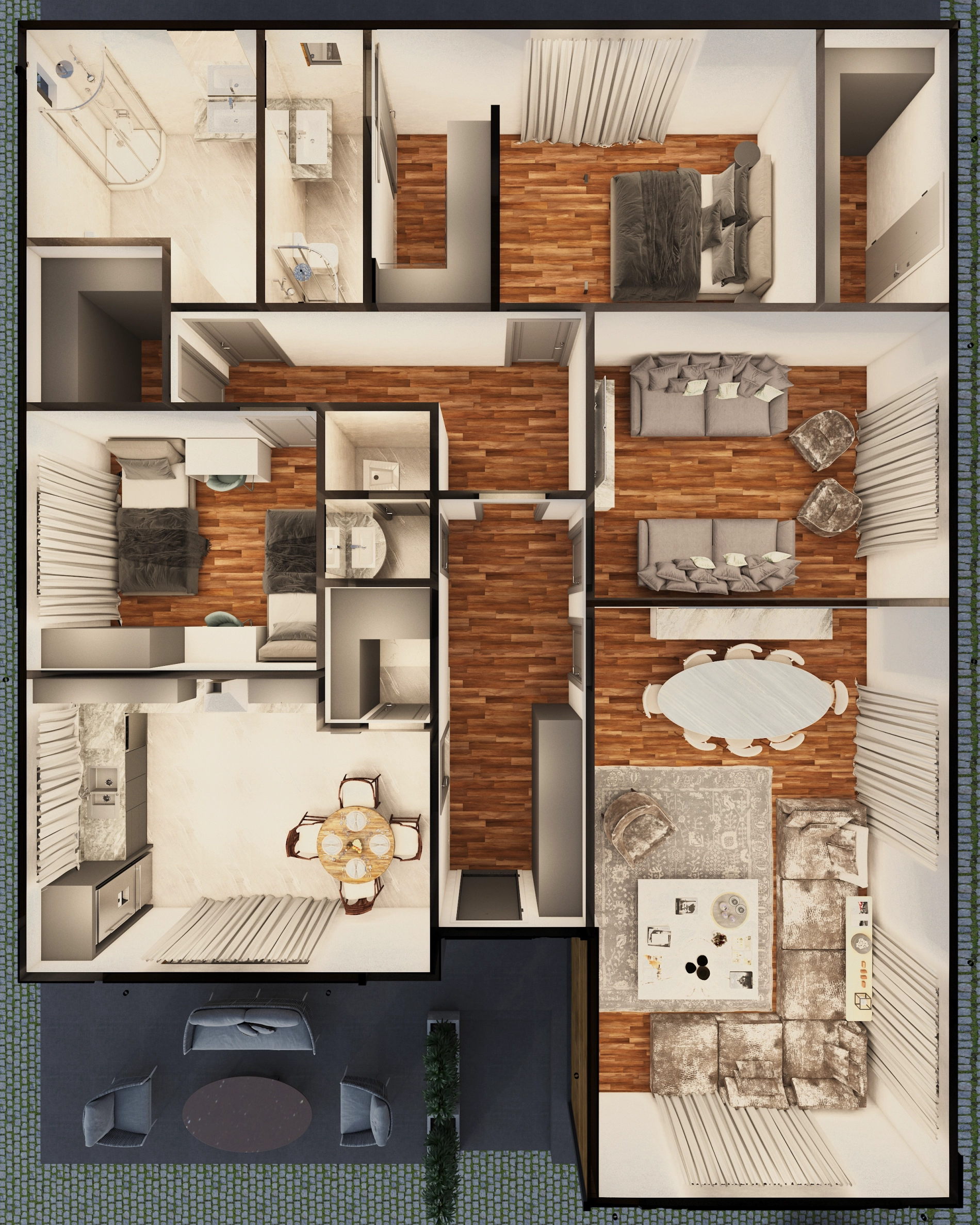 Duvar ve ara katta kullanılan izolasyon malzemeleri, dışarıdan gelen seslerin binaya girmesine izin vermez; odalar ve katlar arasında yüksek performanslı bir ses yalıtımı sağlar.